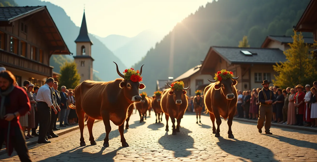 La Désalpe, ou « Rindya » en patois fribourgeois, est la cérémonie qui clôt la saison des alpages. Pour le non-initié, cela ressemble à un charmant cortège de bétail décoré. Pour l’habitant, c’est la conclusion d’un cycle de labeur, un spectacle social où chaque détail a son importance. Ce n’est pas un défilé, c’est une démonstration de fierté et de hiérarchie. Observez attentivement et vous apprendrez à lire ce langage non-verbal, comme le font les locaux à Charmey, où cette tradition vivante est profondément ancrée dans le patrimoine.
