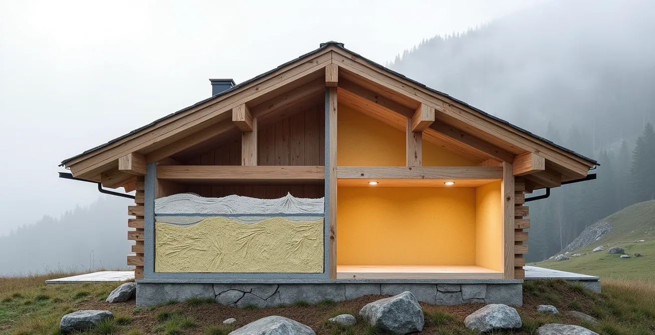 À l’inverse, les isolants biosourcés et denses comme la fibre de bois ou la ouate de cellulose (issue du recyclage de papier journal) excellent dans ce domaine. Avec un déphasage de 10 à 13 heures, ils agissent comme un véritable bouclier thermique. La chaleur du milieu de journée n’atteint l’intérieur que tard dans la nuit, maintenant une température confortable tout l’après-midi. L’impact est spectaculaire : on peut gagner jusqu’à 5-7°C de fraîcheur par rapport à une isolation classique. Alors que MétéoSuisse prévoit une augmentation de 200% des nuits tropicales d’ici 2050, investir dans un isolant à fort déphasage n’est plus un luxe mais une nécessité.