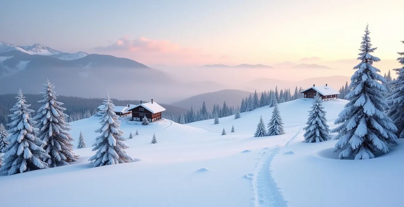 Néanmoins, en se basant sur les observations des dernières décennies, une fenêtre se dégage comme étant la plus propice. La période allant de fin janvier à fin février est statistiquement la plus fiable pour trouver un manteau neigeux continu sur la majorité du parcours. C’est à ce moment que le froid est bien installé et que les chutes de neige successives ont eu le temps de construire une sous-couche solide. Partir en décembre est risqué, la neige peut être mince et éphémère. Partir en mars peut être magnifique, mais le redoux peut rapidement transformer la neige en « soupe », surtout sur les versants sud.